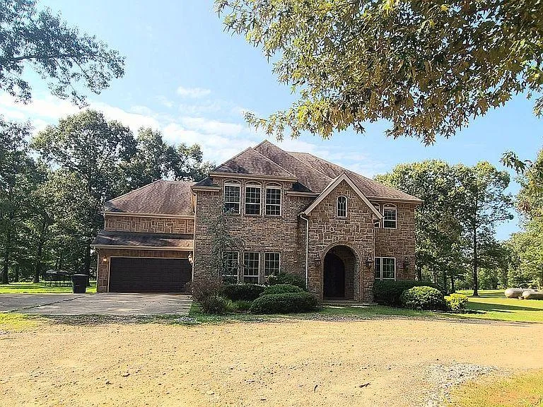 The 4 bedroom 5 bath home sits on 15 scenic acres and is located on a dead end road.