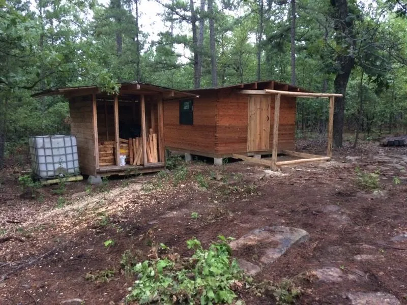 5.5 acres and a hunter's cabin. Up on Trophy Ridge on the north facing slopes of Flagpole Mountain. The cabin is built of cedar as is the outdoor toilet.