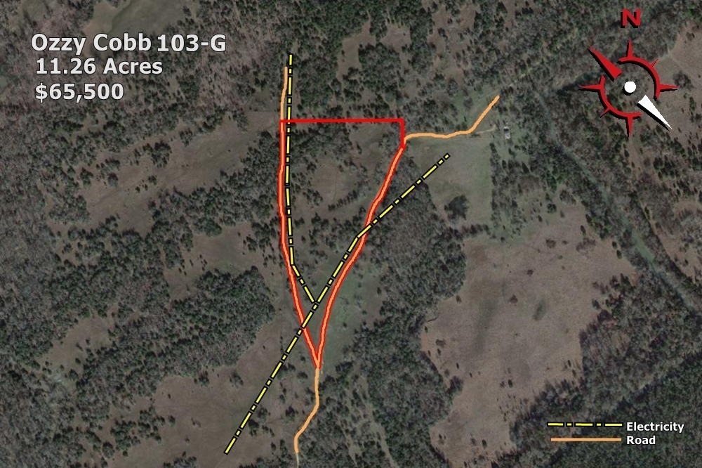 Now available! Ozzie Cobb Area 103-G is a superior example of a property with mixed forest and meadows and easy all weather access. Offering excellent wildlife habitat, seclusion and electricity all located in SE Oklahoma. This property is centrally located between 3 large metropolitan areas.