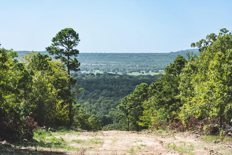 The main entrance of this almost 12-square-mile property is easily accessible from State Highway 2, just four miles north of Antlers, Oklahoma, and 2.5 hours from Dallas. The ranch also contains multiple secluded entry points via county roads. An extensive road-and-trail system throughout the property allows for easy travel and increased management capabilities. Utilized for recreation and timber management, the property boasts a diversity of hardwood and pine timber, ranging from bottom-land oak flats to over 900 acres of various stages of pine plantations. The topography on the property is also impressive, ranging from 400' along the Kiamichi River to a majestic viewpoint of 980'.