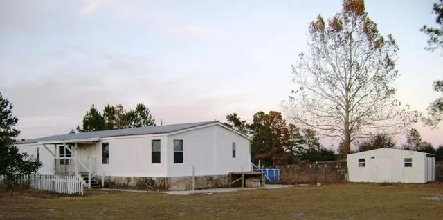 Spacious mobile home on almost 5 acres with over 1,600 sqft, detached carport & powered workshop. No appliances. Heat pump is gone & seller will not replace.