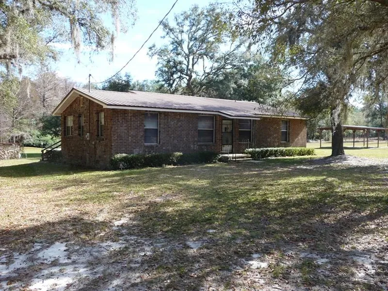 Peaceful location yet close to shopping! Private setting on 3.4 acres with small fishing pond.This 3BR 2BA home has many comforts. Large screened porch and outside sitting area great for BBQ'S. Huge storage building with overhang for additional storage. This home has a metal roof, brick stucco, security system, updated kitchen and bath. Many nice and welcoming features.