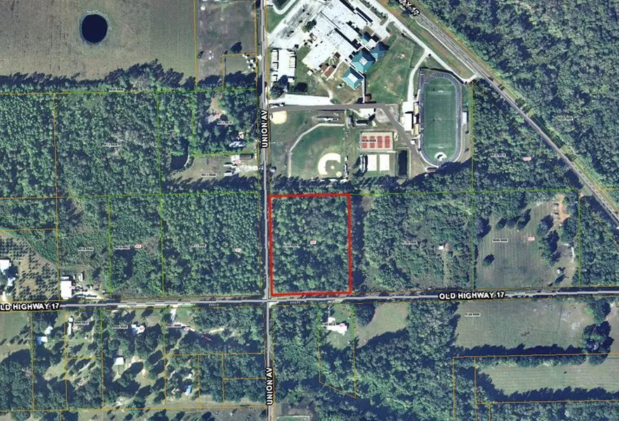 Heavily wooded corner lot, backs up to school property on north side. Paved road access on two sides.
