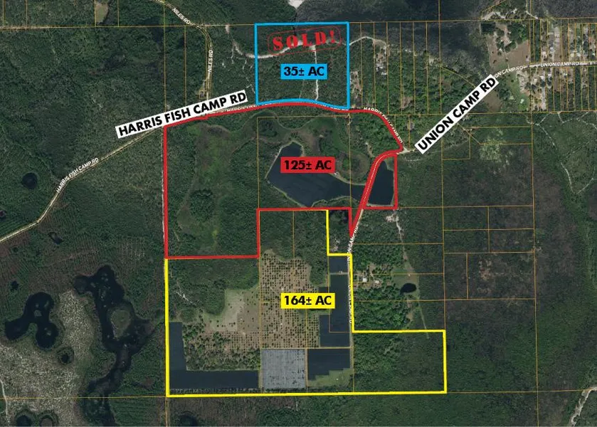 Road Frontage: 3,770 on Harris Fish Camp Road; 2,500 on Union Camp Road.