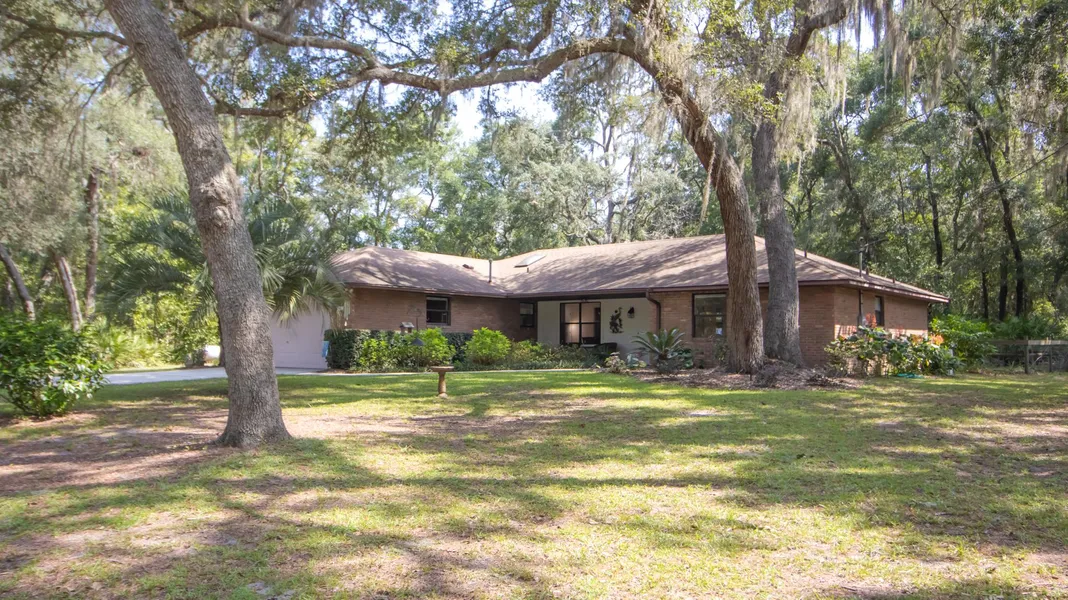 Beautifully maintained brick 3 bedroom 2.5 bath home in quiet secluded neighborhood with lots of natural areas. The home sits on .74 acres. A wooded .62 acre lot next door is included with in this sale, for a total of 1.36 acres. Deer, fox, turkey and owls are regular visitors. Just a few minutes walk or bike ride to beautiful Melrose Bay Park, Big Lake Santa Fe and the historic town of Melrose, where there are several galleries and restaurants. This home features a large kitchen with plenty of cabinets and Granite Countertops, an inside laundry, split bedroom plan, gas or wood burning fireplace and a 2 car attached garage. The owner's suite has a Full Spectrum Sauna and a lovely bathroom with Granite countertops The living room opens to beautiful stucco walled courtyard with a relaxing feel and privacy. The home comes with all appliances and a 2022 Generac Guardian 13kw Generator (1 yr remains on maintenance contract). A large shed with electricity is in the side yard. The beautiful yard with lots of plants. Also Grapefruit, Chinese Honey, Pear, Peach, Blueberry, Loquat, Mulberry, and Meyers Lemon Trees. There is a sprinkler system that waters the front and back beds and around the fruit trees.