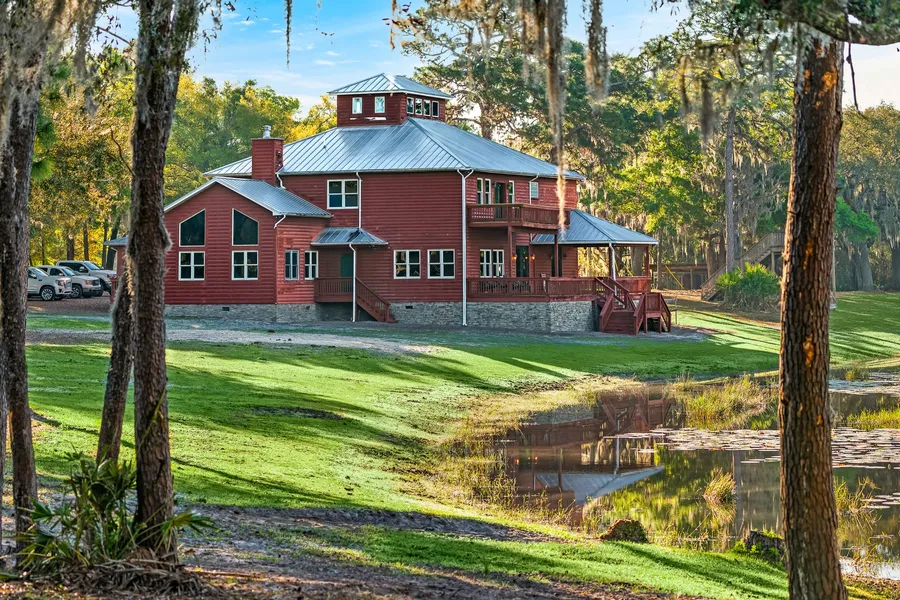 Commercial grade kitchen with beautiful Oak cabinetry, granite counters, DCS gas range, double ovens, Wolf fryer, and two islands (one eat-in). A formal dining room is across the hall with an exquisite cypress table milled from the ranch. Second floor hosts the bedrooms, and the third story is a crow's nest with panoramic views. Front and rear porches for stunning sunrise and sunset views. Across from the lodge is the clubhouse with stunning craftsmanship like cypress walls, oak floors, vaulted 9-foot ceiling, and natural stone fireplace. With wild game, timber, and water, 7C's Ranch is a haven that provides safety, security and self-sustaining capabilities. Yet it is also conveniently located just one hour from destinations such as St. Augustine, the oldest city in the US, with charming cobblestone streets, deep history, and world-class restaurants. Mere 15 minutes to the St. John's River, which is known as the Bass Capital of the World.