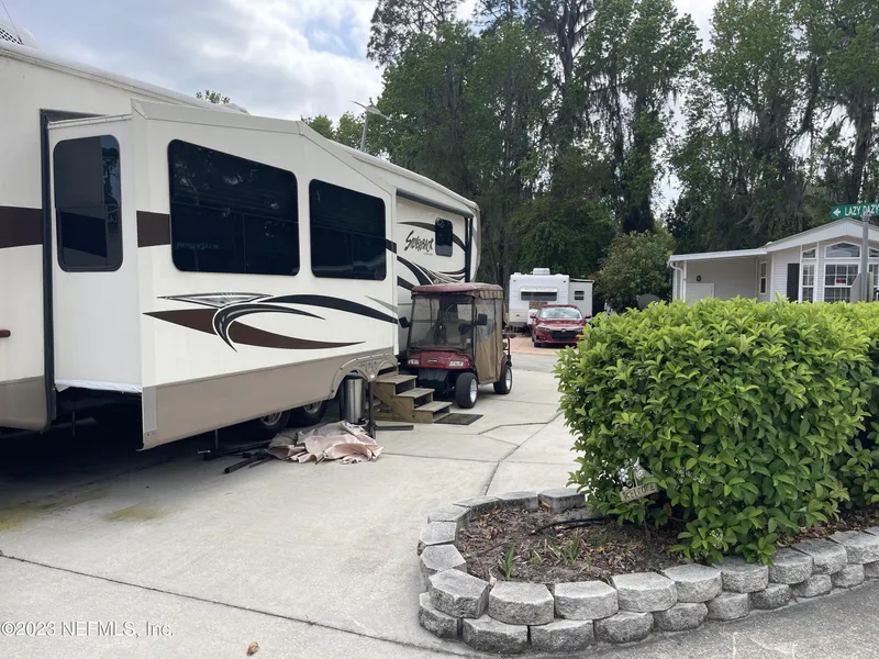 Welcome to Lazy Days Camp Resort! This lot offers a wonderful opportunity to experience the ultimate in RV living in a picturesque location surrounded by natural beauty. The lot is spacious and well-maintained, offering ample room for parking and outdoor living. It features a concrete pad and full hookups, including water, sewer, and electric connections. The Lazy Days Camp Resort community offers a host of amenities, including a clubhouse, swimming pool, some fitness equipment and more. The resort is conveniently located near a variety of recreational opportunities, including fishing, boating, and hiking. There are also several local restaurants and shops in the area. The RV and golf cart on the lot is for sale under a separate agreement with the owner.