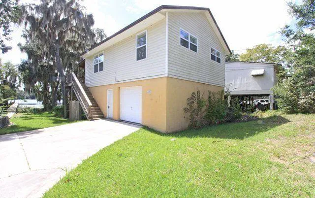 Pull into the concrete block garage, close the door & leave the world behind. From the second level living quarters watch the fish jump & the birds dive into the forever flowing St. Johns River. Spacious great room concept with 10' ceiling opens to riverside deck overlooking the 75ft frontage. Have your boat moored up at the dock for a swift retreat with the fishing pole & good book in hand & a day on the river. Evening cruises, a perfect way for the sun to set offer a chance to see wildlife that shy away during the day & great shrimping in season. This is your perfect retreat!