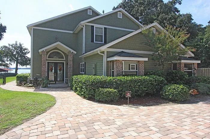 Magnificent, spacious, custom-built St. Johns Riverfront, 3BR/3.5BA, 2-story pool home! Massive outer walls provide a solid foundation, surpassing state required building code. Double insulated walls, 10-18 tray ceilings. Double-sided gas log fireplace. Gourmet kitchen w/double ovens & butlers pantry. Master suite w/sitting area & balcony overlooking river. Double boathouse w/water, electric, lifts & floating dock. Walkways w/pavers surround home and meet up w/wood decking around pool area.