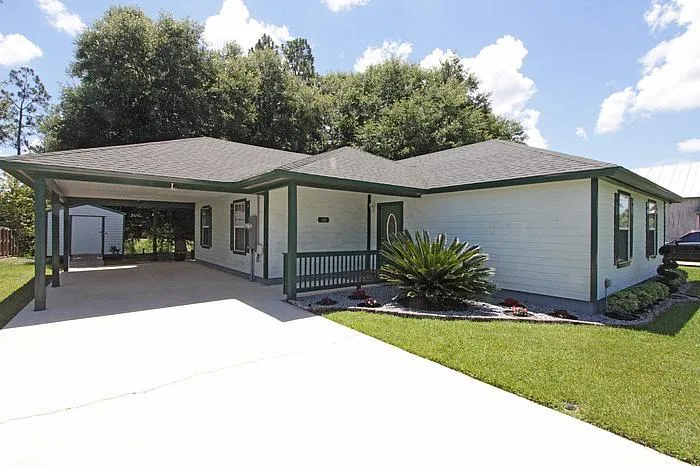 Really sweet, immaculate canal front site built home w/gorgeous tongue-in groove knotty pine walls in great room. Master bedroom w/trey ceiling. Master bath w/garden tub. Open covered patio w/hot tub. Large wood deck w/stone bar-B-que overlooking waterfront. Seating area on dock w/security light. Underground utilities. Detached storage shed w/air.