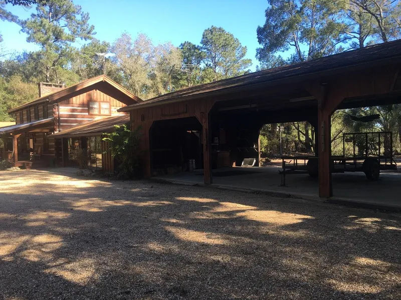 This is a one of a kind retreat that boast a 5BR/3BA log home located on beautiful Cowpen Lake & Ray Lake. Master bedroom has wood-burning brick fireplace. 2 bedrooms & 1 bath are located in the full basement that has a living room w/wood-burning brick fireplace. It is a must see. While sitting on the huge deck, you'll feel like you are in the hills of north Georgia. There is an awesome game room, 3-car carport, detached garage, greenhouse, storage building, & the list goes on for what this property has to offer. The guest cottage is beautifully done with a bedroom, bath, living room w/wood-burning brick fireplace, kitchen & dining area. Pines, palms, azaleas & ferns are located throughout the property.