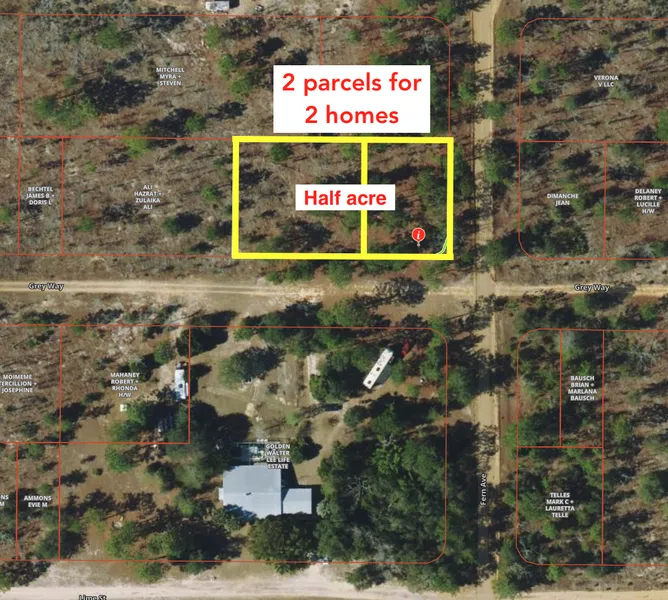This half acre lot is 5 adjacent parcels next to each other that are zoned for 2 total homes.