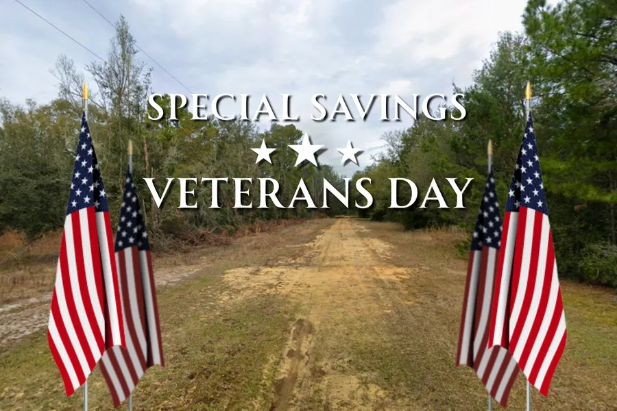 Veterans Day Special - Save Big on Your Next Land Purchase! In honor of our heroes, enjoy exclusive savings on select properties this Veterans Day. A perfect time to secure your land at a great price-act fast before it's gone!