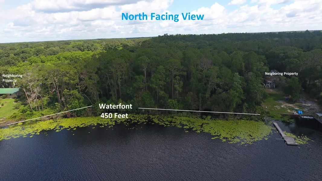 A rare opportunity to own this unique secluded property with 450 feet of south facing lake frontage on Lake Winnott. Beautifully wooded land with large Live Oaks, Pines, Magnolias, etc.. This property has two gated entryway's, a dirt road from highway 21 from the East and a paved road from Baker's Acres from the West. There is also a small cabin with power and well that could be fixed up for future use. Lake Winnott is one of the best Property is near Historic Melrose, 30 minutes from Gainesville and 45 minutes to St. Augustine.