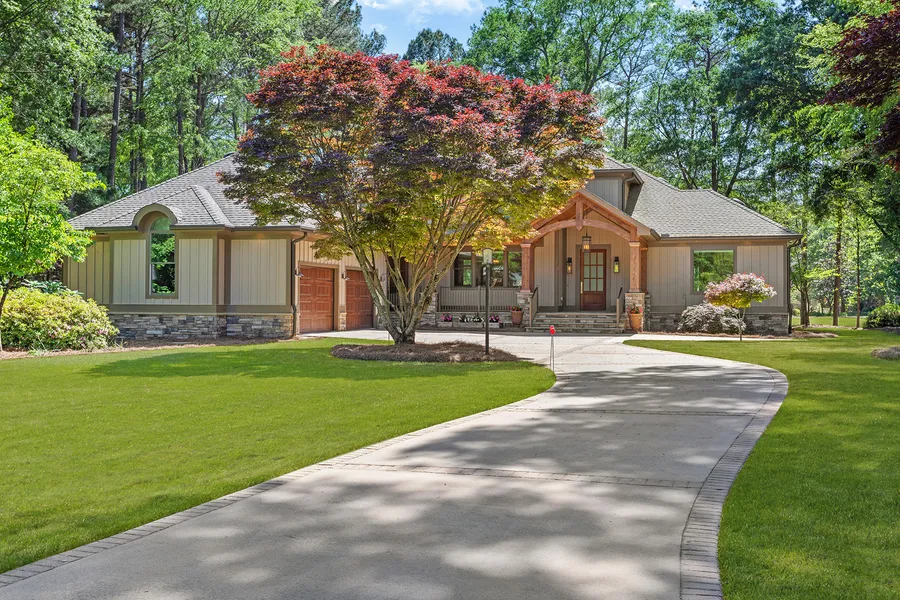 New construction with golf and lake views! Being sold by the original owner, this home was completely rebuilt inside and out in 2020 and is located on the picturesque sixteenth Hole of the Jack Nicklaus Great Waters Signature Golf Course. Spectacular open floorplan perfect for entertaining, the floor to ceiling windows offer an amazing view of golf and lake views from almost every room in the house. The main level features a luxurious master suite with zero entry walk-in shower and spa bath features, chefs kitchen with oversized island, wet bar complete with wine fridge and ice maker, study, family room, sunroom, eat-in kitchen area, a separate den, and dining room, large laundry room with plenty of cabinets for storage, white oak hardwood floors throughout & timeless upscale trim. The upper level features two additional large bedrooms with ensuite baths. Enjoy the cool evenings with fire from your terrace patio. This home has too much to list. Must see! Golf Membership is being made available.