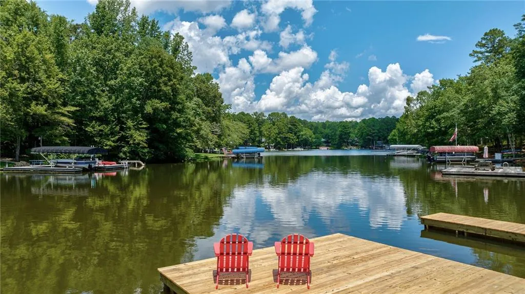 Spectacular Oconee lakefront home with a brand-new boat dock! Located in a beautiful wide cove with great water where you can float and frolic in the lake without the disruption of speeding boats. Bask in the sun on the new sun deck or jump in your boat and cruise on over to Jumping Rock before you head out to explore the expanse of Lake Oconee. Step on into this gorgeous, recently refreshed, Chalet style home with lake views from almost every room. As you enter, you'll be greeted by the dramatic height of the beamed, cathedral ceilings in the inviting great room filled with so much light and adorned with a floor to ceiling stacked stone fireplace and opens to the sundrenched sunroom and the beautifully appointed kitchen. The kitchen has an abundance of cabinetry and granite counter space, a breakfast bar, 2nd prep sink, a built-in desk, SS appliances and views to the formal dining room. If you aren't an entertainer, you will soon become one! The main floor also boasts 2 large primary ensuites both with lake views, deep walk-in closets and access to the 2 decks that flank the sunroom. Upstairs above the 3-car garage, you'll find an oversized guest suite large enough for multiple sleeping areas, add a morning bar and your guests won't need a thing during their stay! Now, for the truly special feature of this home... a ready to finish, full, daylight terrace level with high ceilings and a lower veranda that runs the span of the home with gorgeous lake views. 4th bedroom and 4th full bath are in place and ready for your finishing touches. Studded and stubbed for an additional bedroom and bathroom, plus a wide-open space for your 2nd great room/recreation room or media room! The possibilities are endless. Easy access to the lake and dock from the main floor side door or right off the lower veranda. Just a short stroll down the newly installed, gently sloped, walkway. Less than 20 minutes to the shops and eateries at Lake Oconee Village. This is a perfect primary home, 2nd home or even a part time vacation rental, you decide.