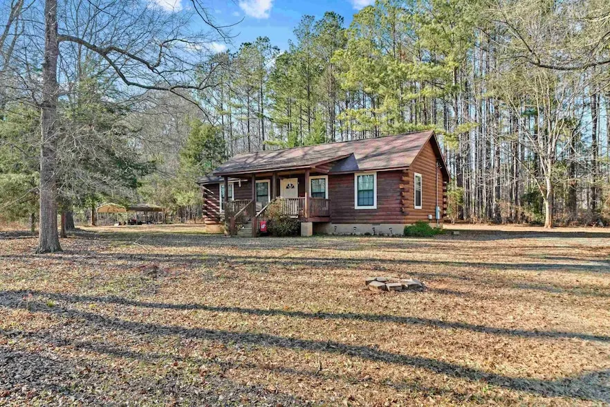 ABSOLUTELY ADORABLE! This 2 bed/2 bath cabin is directly across the street from Lake Sinclair and sits on a 1.03 acre lot! This beautifully constructed home has been meticulously maintained - open concept with a ensuite on both sides of the house. Living room, dining area, kitchen are all in the middle with vaulted ceilings, & the laundry room is off to one side. Super level lot, beautiful trees, covered front and back porch & so much more! This home would be perfect for almost anybody - whether you are looking for a place at the lake, downsizing, buying your first home & more!