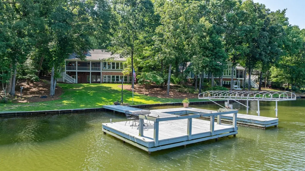 Discover timeless Southern elegance and luxury lakefront living in this custom-built 5-bedroom, 3.5-bathroom estate located in the prestigious Great Waters community at Reynolds Lake Oconee. Situated on a prime waterfront lot with a max dock and boat lift, this home offers stunning views that only Lake Oconee can provide. From the moment you arrive, a circular driveway and mature landscaping create a warm, private, and welcoming first impression. Step inside to find heart pine floors, tongue-and-groove ceilings, and solid construction details that give this home both character and comfort. The main floor features a spacious master suite with his-and-hers counters, jetted tub, separate shower and adjacent laundry for ultimate convenience. The lakefront breakfast room, cozy den with masonry fireplace and gas logs, and screened porch overlooking Lake Oconee set the tone for peaceful morning...