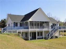 Wonderful escape to the lake with this modified A-frame on the south side of Lake Oconee with max dock and approx 278 ft of water frontage. Peaceful cove access with great main lake views. This home has an open floor plan, vaulted ceilings, wood floors,finished walk out basement and plenty of room for friends and family!