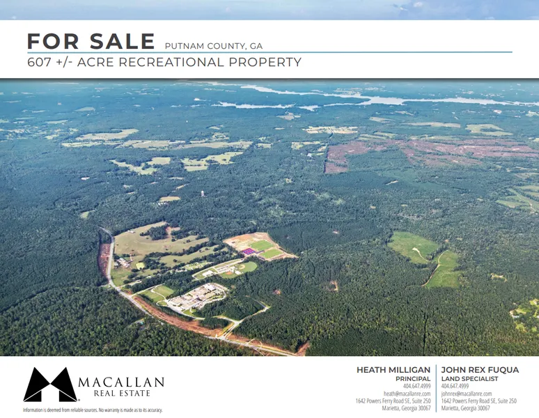 Macallan Real Estate is pleased to present the Rock Eagle Tract, 607 acres of recreational land located in the heart of Georgias Lake Country. Meticulously managed with long-term stewardship in mind, the propertys mature pines, upland hardwoods, hardwood bottoms and numerous food plots provide great habitat for a healthy wild game population. The Rock Eagle Tracts gently rolling topography is easily traversed by a well-maintained interior road system, providing access to all areas of the property for forest management and recreational activities.