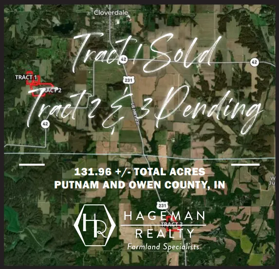 Located in Owen and Putnam Counties, just south of Cloverdale and only 35 miles from Indianapolis are 3 tracts of desirable Indiana land. Tract 1 is all tillable farmland. Tract 2 is great hunting and recreational land with blend of tillable and wooded. Tract 3 has tillable and wooded land and includes a scenic building site along Hwy 231.