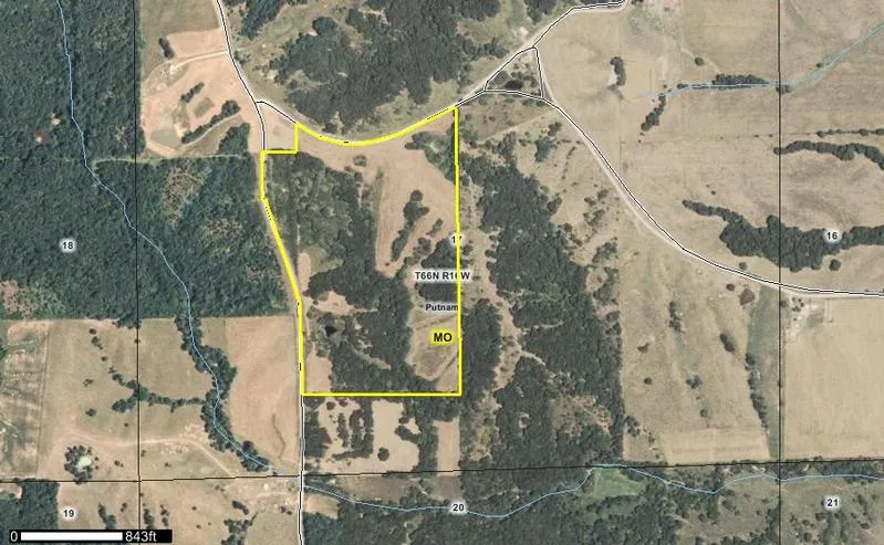 66.5 acres m/l of great hunting within a few minutes of Rebels Cove. Rebels Cove is over 4,000 acres of DNR ground. The area is known for giant whitetails. Farm has a lot of field edges, many little ponds, cut ditches, patches of very very thick cover for bedding and nice secluded areas for food plots. With many acres of timber that border the farm with food plots you would own the deer from all the bordering timber. Property consist of timber, meadow is being used for hay and 5 ponds (3 small, 2 average size. Black top road on west side has no view into the farm because of the timber at the road. Gravel road on the north side of the farm. Rural water and electric on both roads makes it easy to build a hunting cabin or a retirement home. Farm is appoximate 4 miles to Iowa.