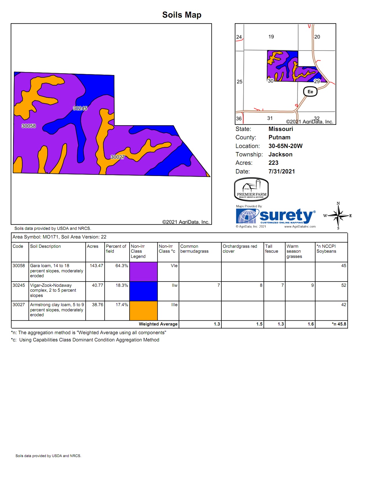 Search for detailed parcel information including; Elevation & Vegetation Maps, Ownership Information, Detailed Parcel Information, Crop History Map, Soil Survey Productivity Data, and more.