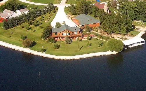 Beautiful waterfront home with panoramic views of lake with 525 ft. of rip rap shoreline. Home has cathedral ceilings, fireplace, and stained glass windows on lake side of home. Walkout basement includes family/den, kitchenette & oak bar plus 2 bedrooms, 3/4 bath and extra storage area. 3 car detached garage also includes 32x23 game room, an 8x15 office/gun room and 3/4 bath. 1392 sq. ft. steel & concrete covered boat dock with air lift. Many extras in this home. Call to see today!