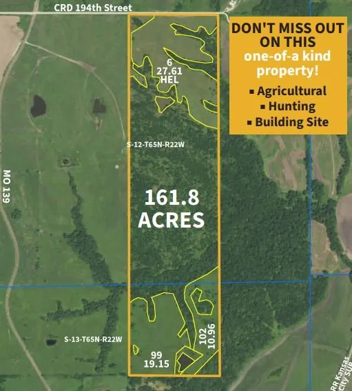 FIRST CLASS PROPERTIES is pleased to offer this 161.8-acre property at auction, showcasing a unique combination of agricultural, hunting, and building potential. Located in western Putnam County, Missouri, between Unionville and Princeton, and South of Hwy 136, this property provides a balance of seclusion and accessibility. The tracts diverse landscape, featuring 60 acres of open area with a row crop base, timber with dense cover, and two ponds, creates an ideal environment for wildlife, complemented by the nearby Medicine Creek bottoms. There is rural water and electricity available at the road, but not installed on the property.