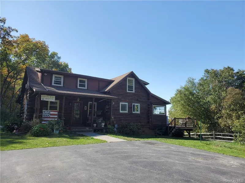 Welcome to this charming Log cabin style 3 Bedroom/2 Bathroom home on over 3.5 acres on NY/CT border. Set back off the road you ll find your own private Ponderosa w/expansive cleared backyard & mountain views surrounded by lush woods. Property features Horse Paddock & Barn w/(2) matted stalls, tack room & hayloft (holds 250 bales). Relax on your Front porch or Trex deck. Interior home showcases open floor plan, hardwood floors as seen, Living Room w/woodburning stove insert/stone hearth, vaulted/cathedral ceilings/wood beams, kitchen w/Terra Cotta floors/island, Stainless Steel appliances (new oven/range/DW), bright sunny Dining area, 3-Season room, Bedroom & Full Bath w/marble floor on 1st floor. Climb up to the loft-like Master Bedroom w/plenty of closet/storage space, Guest Bedroom & Full Bath w/marble floor. Recreational Basement w/soapstone woodburning stove & French doors to yard. ...