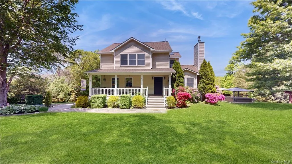 First time on the market! This meticulous 3 bedroom, 3 1/2 bath colonial home is waiting for you. As you step onto the inviting front porch, you enter a spacious foyer leading you into the living area, featuring a cozy wood-burning stove that not only adds charm but also efficiently heats the home offering savings on winter heating bills. With your private woods behind you, you will enjoy an endless supply of wood and the added privacy it provides. There is a wonderful dining room, perfect for hosting holidays and events, while soaking in the picturesque skyline through windows. You will also find the family room with the natural light entering into the room creating a warm and homey feeling. The fully renovated kitchen boasts GE Caf appliances, a propane gas stove, pot filler faucet, double oven, Quartzite natural stone countertops, and ample cabinetry soft-close drawers. A generously sized island and bar nook area, complete with a dual-zone wine and beer refrigerator, making entertaining a breeze. Step out from the kitchen onto a large deck and multi-level outdoor space overlooking a yard & beautiful above-ground "salt water" pool-ideal for summer relaxation and gatherings. An updated powder room and versatile space to be used as an office or storage that completes the main level. Upstairs, the primary bedroom is huge which features another recent renovation in the master bath, showing a double sink granite vanity and beautiful glass shower doors, along with an extra-large walk-in lighted closet. Two additional bedrooms and a fully renovated hallway bathroom complete the second floor. The outdoor space welcomes a family time feeling like your personal retreat. The deck off the kitchen has a beautiful view of this property & skyline. Below is a paver-lined patio for additional seating and recreation. Timber Teck decking from the top deck to the lower level surrounding the hypo-allergenic salt water pool. There is also a canopy covered hot tub, with a stone seating area, and ample yard space for lawn games or a fire pit. Additional living area in lower level. Central air conditioning, an attached two-car garage with a Generator Transfer switch, and a double-sized shed with electricity. Conveniently located near major transportation routes, shopping, schools, Metro North, parks, golf courses, bowling alleys, skiing/snowboarding at Thunder Ridge, and more, this home offers the perfect blend of summer fun, winter coziness and great time with loved ones. Welcome home to your own private oasis.