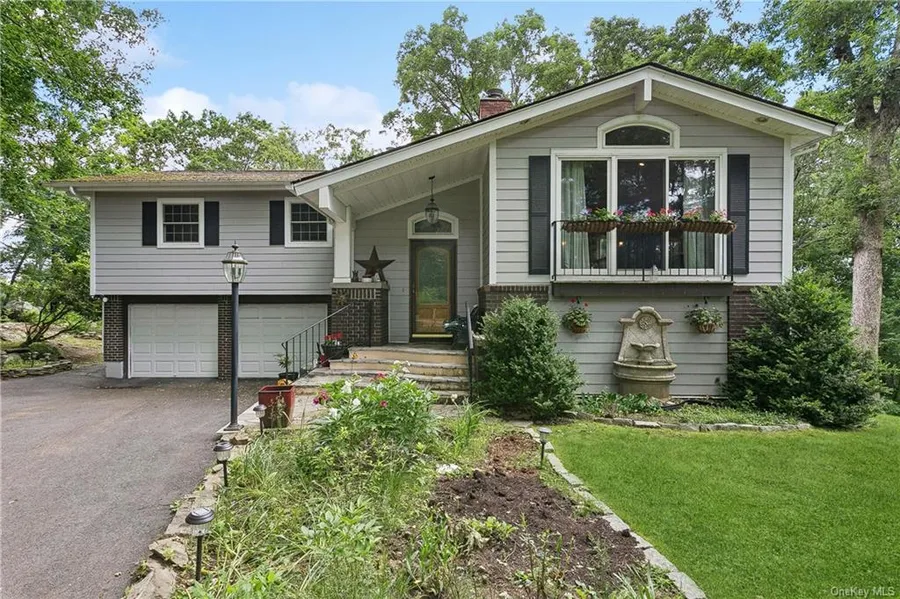 Discover the charm of this stunning home featuring 3 bedrooms and 2 full bathrooms, seamlessly blending comfort and style. Nestled on over an acre of property, this residence boasts a pool with a wrap-around deck, perfect for summer enjoyment. The main level offers an updated kitchen with granite countertops, stainless steel appliances, and a breakfast island. The dining room opens to a screened-in porch, ideal for enjoying seasonal views. The living room features cathedral ceilings and a cozy fireplace, perfect for gatherings. This level also includes three bedrooms, with the primary suite offering double walk-in closets for ample storage. The lower level features a spacious room with a bay window, a family room with a wood-burning stove, a second full bathroom, and a laundry area. This level also offers additional storage space and access to the 2-car garage. A unique feature of this home is the lift, adding convenience and accessibility. A new on-demand generator, and new Hardie plank siding ensure comfort and peace of mind. Located close to the Metro-North train station, shopping, and schools, this home offers an ideal blend of tranquility and convenience. Don't miss the opportunity to make this exceptional property your new home.