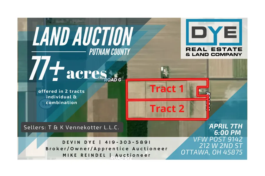 LAND AUCTION! 77 +/- ACRES IN GREENSBURG TWP, PUTNAM COUNTY, OHIO OFFERED IN 2 TRACTS (INDIVIDUALLY OR AS A WHOLE)