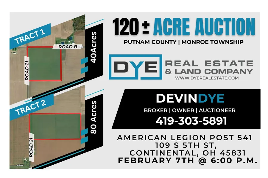 Tract 1: 40 +/- acres located in Monroe township Putnam County Ohio. This tract is located on southeast corner of Road 21 and Road B. This farm consists of 100% Toledo silty clay, which has an NCCPI rating of 68!