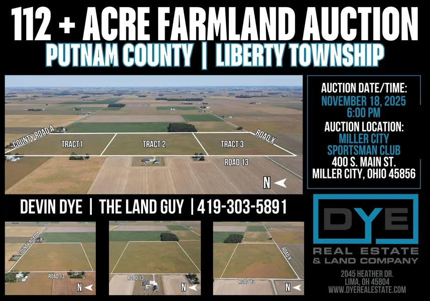 This is a rare opportunity to purchase three high-quality farmland tracts, located in Liberty Township, Putnam County. Perfectly suited for farmers and investors alike, these properties offer excellent tillable land with prime Hoytville soil, systematic drainage, and flat topography.