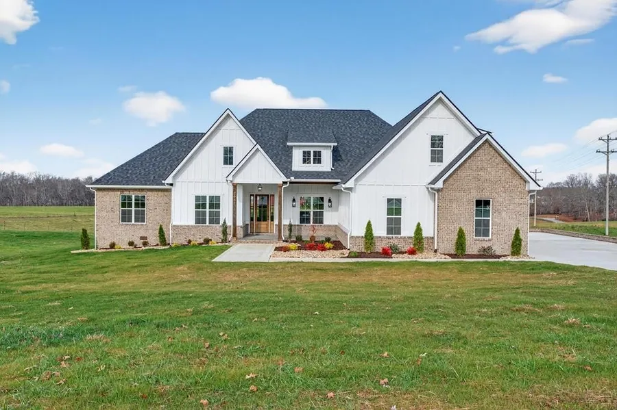 Another beautiful Patriot Properties built home with custom touches & upgrades thru-out! . The Barton plan features 4BEDROOMS on the main level, 2 full BA & 2 half bath. Open Floor Plan with hardwoods, custom trim. Gorgeous Eat-in Kitchen and huge walk-in pantry! Large MBR with suite, Walk- in tile shower, garden tub, & walk-in custom closet. Large bonus room w/ 1/2 bath. 3 car garage w/ 8ft tall doors and 24ft deep! Coverage back patio & front porch, both w/ stamped concrete. 1 yr builder's warranty!