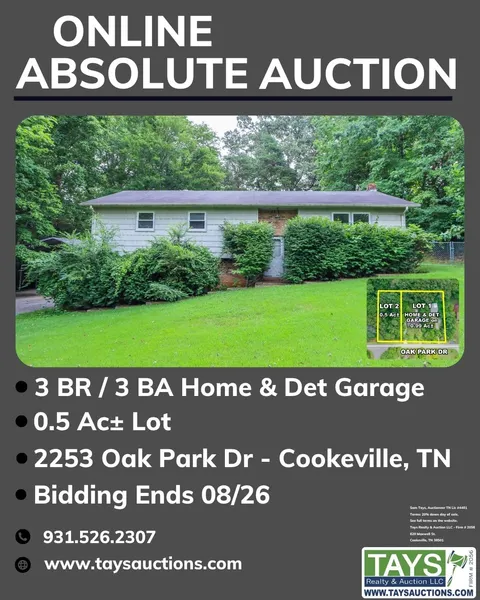 Online Absolute Auction: 3 BR / 3 BA Home with Det Garage on 0.99 Ac & 0.5 Lot