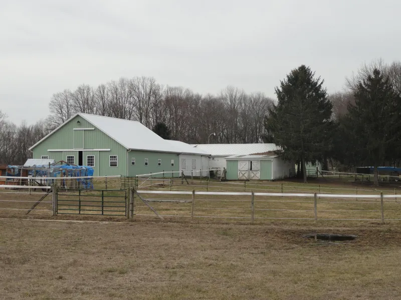 41.8 acres mostly open tillable or fenced pasture. Some woods. One bedroom efficiency apartment, newer 12 stall horse barn, equipment sheds, garages, run-in sheds, and more. The original house burnt down and is cleaned up and gone, however well and septic still there and viable.
