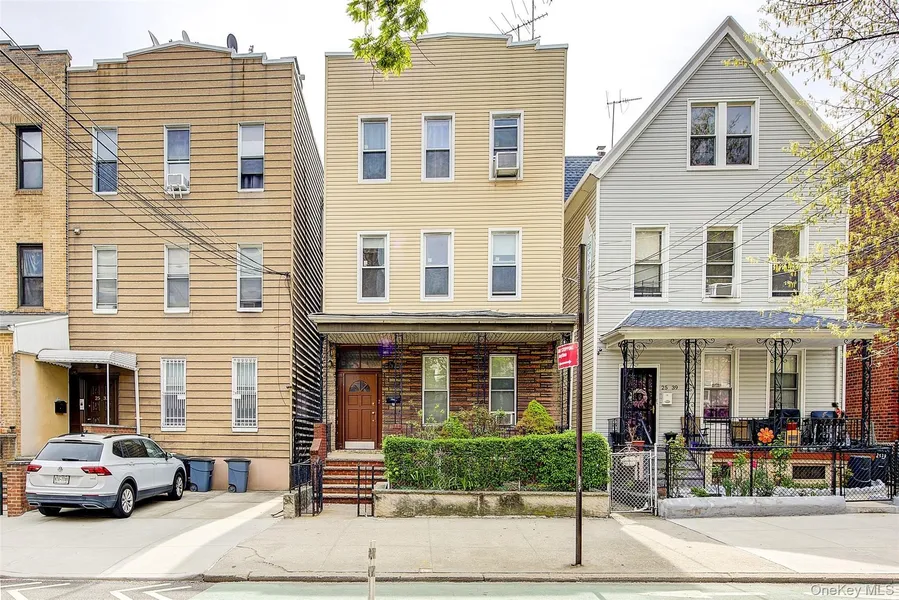 Large and fully detached three story 3 family home in prime location of Astoria, Queens. House features 8 bedrooms (3 over 3 over 2), 3 bathrooms, full basement, and an oversized backyard with eastern exposure. Building is a generous 21' x 50' which makes for approximately 1,050 sq ft per floor, and sits on a very unique 25' x 158' lot. Top floor features 3 bedrooms, full bathroom, sunny living room, dining room, eat-in-kitchen with eastern exposure, high pre-war ceilings, large windows, and hardwood floors. 2nd floor features 3 bedrooms, full bathroom, sunny living room, dining room, eat-in-kitchen, high pre-war ceilings, large windows, and parquet floors. First floor features 2 bedrooms, large living room, dining room, eat-in-kitchen, high ceilings, large windows, and access to backyard. Basement is the full length of the building with two means of egress, house utilities, building components, and access to backyard. Location is ideal with Astoria Park just 5 blocks away, Astoria Blvd station (N, W) just 6 blocks away, zoned elementary school just 5 blocks away, and Astoria Blvd commerce less than one block away. Stores, restaurants, shopping and entertainment all along Astoria Blvd, 31st St, and 30th Ave. Property has R5D zoning which makes for an additional 4,700 buildable square footage (consult with architect). So much potential and upside! Live in one and rent out the rest, or rent all three free market units and generate substantial income.