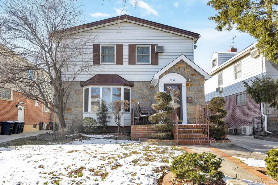 Welcome to this large brick Colonial located on one of the most desirable blocks in Hillcrest-Fresh Meadows. Built on a 26 ft x 39 ft footprint with a full second-story addition, this 2,028 sq ft home offers generous space and a well-designed multi-level layout. The first floor features a bright and expansive living room and formal dining room with hardwood floors, along with a first-floor bedroom and a full bathroom with radiant heated flooring. The oversized eat-in kitchen includes two sinks, two ovens, and two dishwashers, a separate dining nook, abundant cabinetry, and a large pantry / supply room. A side door from the kitchen leads directly to the private driveway and backyard, and a second side entrance from the basement provides added convenience. The driveway also provides access to the one-car garage. The second floor offers four fully carpeted bedrooms and two full bathrooms, including a spacious primary suite with a private walk-out patio, a room-sized walk-in closet, and a Jacuzzi bath. The full basement provides generous open space for storage, recreation, or future finishing and includes a walk-out exit and direct side access to the driveway. Mechanical features include a gas boiler installed in 2017 and a 50-gallon hot water heater installed in December 2024. The home is equipped with three-zone heating for efficient and comfortable climate control. Outside, enjoy a manicured front lawn with in-ground sprinklers, a private driveway, a one-car garage, and a bright backyard. This large Hillcrest-Fresh Meadows home offers exceptional space, thoughtful features, and a flexible layout in a highly sought-after location.