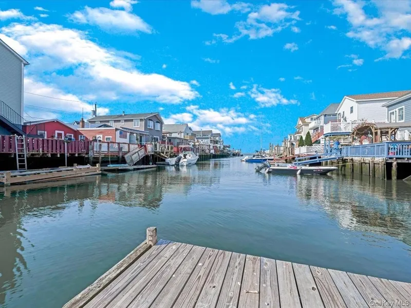 Welcome to 22 W 10th Road in Broad Channel, a raised single-family detached home offering private canal access leading directly into Jamaica Bay. A floating dock with gangway and ramp provides easy docking for boats, jet skis or kayaks, while the spacious back deck and patio overlook the water, ideal for entertaining or quiet relaxation. A private storage shed adds convenience for outdoor gear. Inside, the home is bright and inviting, featuring an enclosed sunroom surrounded by windows filled with natural light. Freshly painted walls and newly sanded, stained hardwood floors run through the main living areas and bedroom. The kitchen includes wood cabinetry, light countertops, and white appliances with a functional layout ready for your personal touch. A dedicated laundry room with hookups offers added convenience. Set on a 2,500-square-foot lot with approximately 871 square feet of living space plus unfinished attic, this property offers the charm of Broad Channel's small-town island atmosphere within New York City. Residents enjoy access to boating, fishing, and kayaking, as well as proximity to Rockaway Beach and the Jamaica Bay Wildlife Refuge. Transit options include a 10-minute walk to the A train and nearby QM16/QM17 express buses for a direct Midtown commute. With low property taxes, direct waterfront views, and a peaceful setting, this home combines lifestyle and value in one of NYC's most distinctive waterfront communities. Experience true island living in the city and schedule a private showing today!