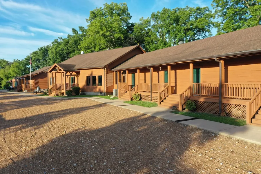 The main lodge features seven large private bedrooms, each with its own full bathroom. These bedrooms are situated along a covered porch that overlooks Whiting Lake, allowing easy access from the main lodge to the individual rooms. Adjacent to the bedrooms is a spacious mudroom designed for hanging waders and hunting gear, with benches to provide a comfortable transition before and after hunts. The great room is truly impressive, featuring a large rock fireplace and expansive picture windows that offer stunning views of Whiting Lake. This room leads to two additional gathering areas, including the famous Sutler Saloon Bar, which was reclaimed from the original Sutler Saloon in Nashville, TN. The bar area is a lively spot after a successful day of hunting. The lodge also includes a large commercial kitchen with a pantry, commercial appliances, and a formal dining area that also overlooks Whiting Lake. Additionally, there is an 800-square-foot private cottage with a large bedroom and full bath. At the end of the lodge site, a 1,300 square-foot guide's cabin/bunkhouse provides five bedrooms, a kitchenette, and two bathrooms, one of which includes multiple showers and toilets. A 1,500-square-foot shop on the property is perfect for storing equipment and decoys. Near the flooded timber, there is another structure, known as the duck shack, which was formerly used as the lodge. It is still occasionally used and offers additional space when needed.