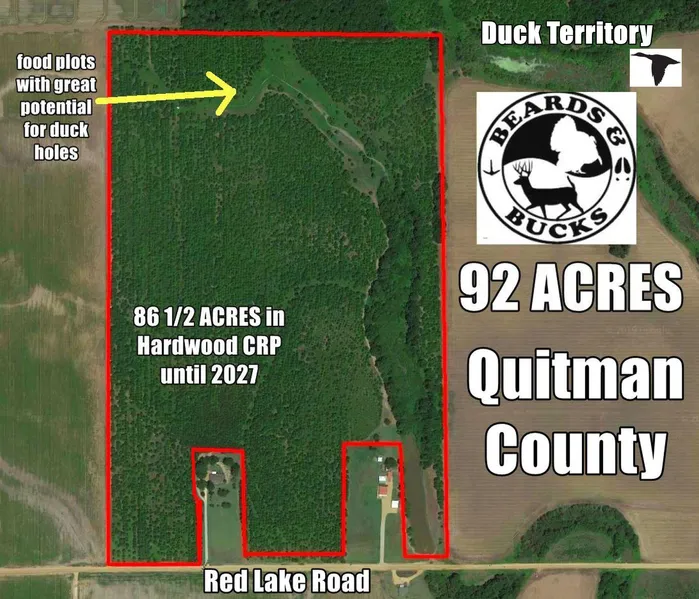 92 Acres with 86 Planted in Hardwood CRP with $6,125 Annual Income through 2027! A road system & food plots are in place ,and there's even great potential for duck holes -- see photos!