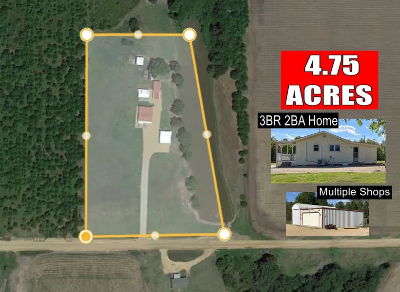 3BR 2BA - 1500 Sq. Ft. Home & Several Shops on 4.75 Acres! Quiet country living on the bayou! Located 15 miles west of the interstate & 4 miles north of Highway 6, this property lies in the heart of great deer & duck hunting territory! Built in 1986, the home has vinyl siding, a metal roof, & a covered front porch spanning the width of the house. The house is all electric & has 4 split units for heating and cooling - one in every bedroom & one in the kitchen/den combo. There are several nice shops on the property, & the large double garage has an automatic door for convenient parking. There's also a storm shelter out front & an equipment shed on the back of the property. Whether you make it your permanent home or a hunting camp headquarters, you'll have plenty of room to store all of your vehicles, equipment, gear, & more!