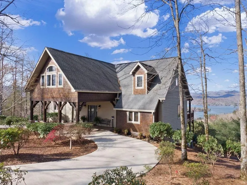 Unique opportunity to live in a custom-built home with unobstructed views of Lake Burton. Perched on Charlie Mountain Ridge this home offers an escape from the hustle and bustle of life with spectacular vistas around every corner. 12 miles to Clayton, GA & 9 miles to Waterfall Country Club. This luxurious mountain home is located in a private setting, on a paved road with a gentle sloping lot that allows you to walk around and enjoy your property with a loved one or pets. The porte cocher and circular driveway add to the ambiance of this tranquil setting. Ente the home greets you with vaulted ceilings, hardwood floors, two story windows with expansive views, great room, a chef's kitchen that's great for entertaining, a large covered deck and master suite that opens to covered outdoor living space. The second level has three spacious bedrooms and a bathroom. The terrace level features a g...