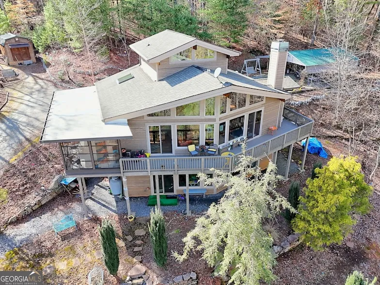 The time has come for the original owners to share their beautiful Lindal House and its surroundings with a new owner. Located in the Persimmon area, this wooded tract of land is secluded with no neighbors in sight. The roughly 7.5-acre property is adjacent to USFS property. No restrictive covenants-HOA exists for maintenance of the private road. Surrounding the house is an established garden with hundreds of perennials cultivated by the green-thumbed owners. The primary bedroom with bath and walk-in closet are on the main level, along with an open great/dining/kitchen area. You'll love the custom cabinetry, side-by-side fridge, and granite countertops. Upstairs is a loft and full bath that can serve as a home office, exercise room, or 4th bedroom (septic permit is for 4 BDR). Downstairs are two bedrooms and a full bath with plenty of natural light and high ceilings.The larger of these two bedrooms could also be an office space with three large closets. There is an adjacent room with private entry for clients (or a game or TV room for kids). Completing the downstairs are laundry and utility rooms. Encasing the house is a wraparound deck. A sunroom has been enclosed and is an amazing space for soaking in the sun and a breeze. This is a well-maintained home with a detached shed/workshop (with electricity) and a two-car carport. Completing the appeal of this home is a whole-house generator, extensive stone landscaping, an underground power line from the road, and ample space for a separate garage/workshop for a boat or RV storage at the entrance of the property. Gate at entrance of driveway. 20 minutes to Clayton, 5 minutes to Lake Burton, 2 minutes to the Tallulah River. No drive bys, please.