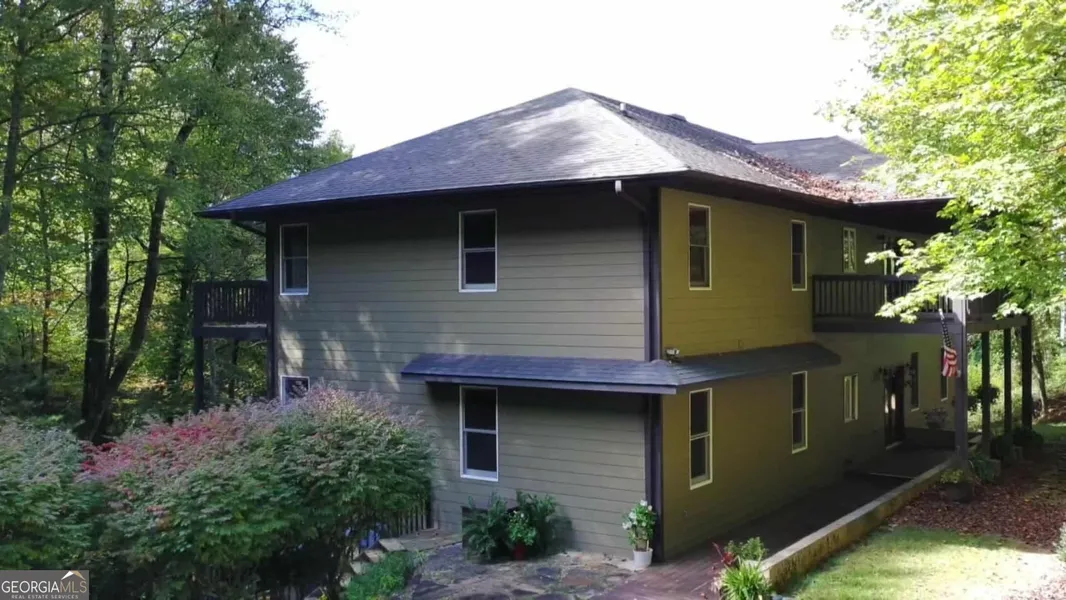 Nestled in the trees, this stunning, Sky Valley Golf Course Home is on the 10th Fairway. Featuring 4 large bedrooms, 4 Full Bathrooms, plus 2 half baths, 3 floors, 3 fireplaces, several decks, and a lovely flowing creek with a landscaped sitting area and a firepit out back. Each bedroom has a private full bathroom, large closets, and a beautiful view. The Great Room has a hand-chiseled rock fireplace, and wide Oak planked hardwood floors throughout the Main Level. The Kitchen features Stainless Steel Appliances, Gas Range, beautiful granite countertops, a Farmhouse Sink, Large Pantry and Laundry Room. Main Bedroom has a private entrance to the Back Deck, his & her Custom Closet System and tiled bath with full steam shower. The Upper Floor has 2 Large Bedrooms, a Vaulted Living Room with Built-In Office, a fireplace, another pantry with Washer & Dryer Hookups, half bath, private front balcony, and entrance to the back decks. The Lower Level has a large room and Unvented Gas Fireplace, designated Sitting Area, Game Room area, Office area, a large Storage closet, and a 21x28ft Workshop. Direct walk out to the landscaped yard overlooking the 10th Fairway of the Golf Course. Convenient, walking distance to all the amenities of Sky Valley Golf Club from the yard, yet private, being nestled behind trees and Mountain Laurels. Fully Paved with easy access and plenty of parking for guests. Covered front porch with landscaped yard, including a dry creek bed. With your paid membership to the Sky Valley Golf Club, you can enjoy golf, pickleball, croquet, pool, weight room, and fine dining, but Club Membership is not required to enjoy the views, walking trails, and park areas. Only 20 minutes to fine dining and shopping in Highlands, NC, and Clayton, GA.