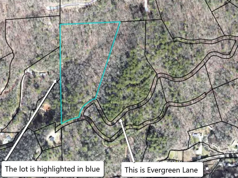 The property is on Evergreen Lane in Sky Valley, Georgia. The nearest home address to the lot is 2666 Evergreen Lane Sky Valley, Georgia. The land is .3 miles down the same road from this home. If you would like to walk the property and find out where it begins and ends, please put the following map coordinates from the pictures of this listing into your Google maps on your phone or you can use an app called Langlide.