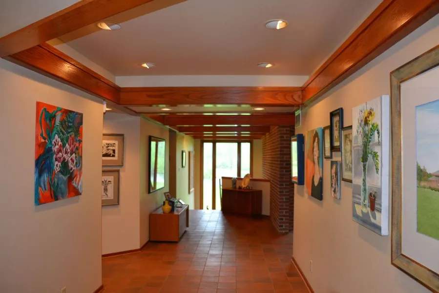 Secluded, Prairie-style Executive home on 24 acres. Travel the tree lined driveway to this beautiful country estate. Home is over 5200 sq ft and designed by architect John Murphy. Ranch home is 4 BR, 4 BA open concept surrounded by floor to ceiling windows offering a breathtaking view of pond and grounds. Natural FP, screened breakfast porch, library and much, much more.