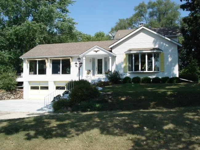 Unique, remodeled country home surrounded by oak trees just outside the village. Open concept LR, Dr, KT great for entertaining. First floor MBR w/ MBA and laundry area. Huge foyer leads to adjacent office. Spacious sunroom off back of home overlooking sunny deck with automatic awning. Upstairs there are 3 more BRs and 1/2 BA. 2-car garage goes under home. Workshop is 19x23 with double door for easy access, separate furnance and air. This is a one of a kind find with a great setting and great schools!